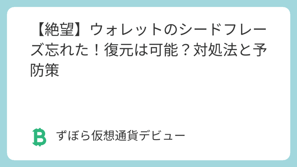 「仮想通貨ウォレットを新しく作ったんだけど、シードフレーズって何だっけ?」「あの12個の英単語、どこかにメモしたはずなんだけど、見つからない…」「もしシードフレーズを忘れちゃったら、ウォレットの中のお金って消えちゃうの…?」 仮想通貨(暗号資... -