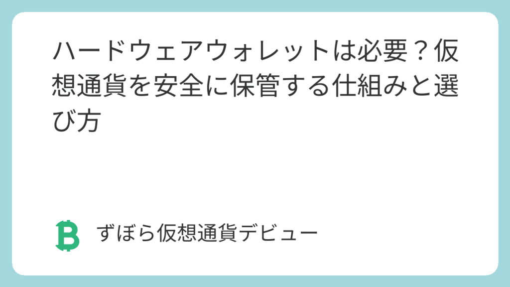 「仮想通貨、少しずつ増えてきたんだけど、保管方法はこのままで大丈夫かな?」「取引所に預けっぱなしで、もし取引所がハッキングされたり潰れたりしたらどうなるの?」「ハードウェアウォレットって聞くけど、よく分からないし、難しそう…」 仮想通貨へ... -