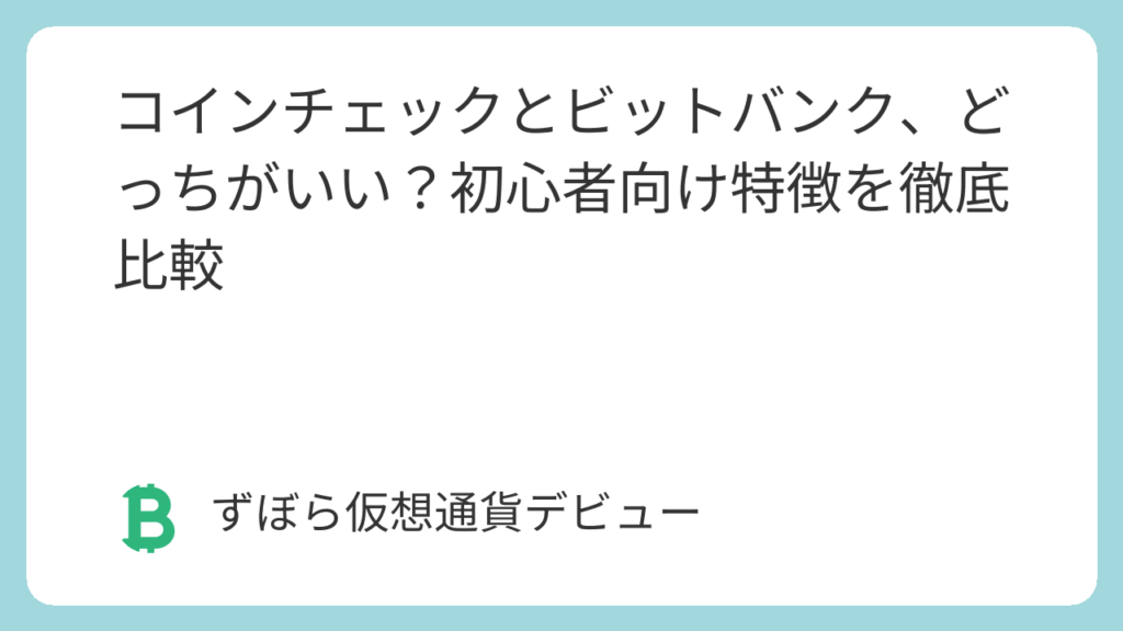 「仮想通貨に興味が出て、取引所の口座を作ろうと思うんだけど…」「コインチェックとビットバンクって名前をよく聞くけど、結局どっちが良いの?」「初心者でも使いやすくて、安心して始められるのはどっちなんだろう?」 仮想通貨投資を始める際の最初の... -