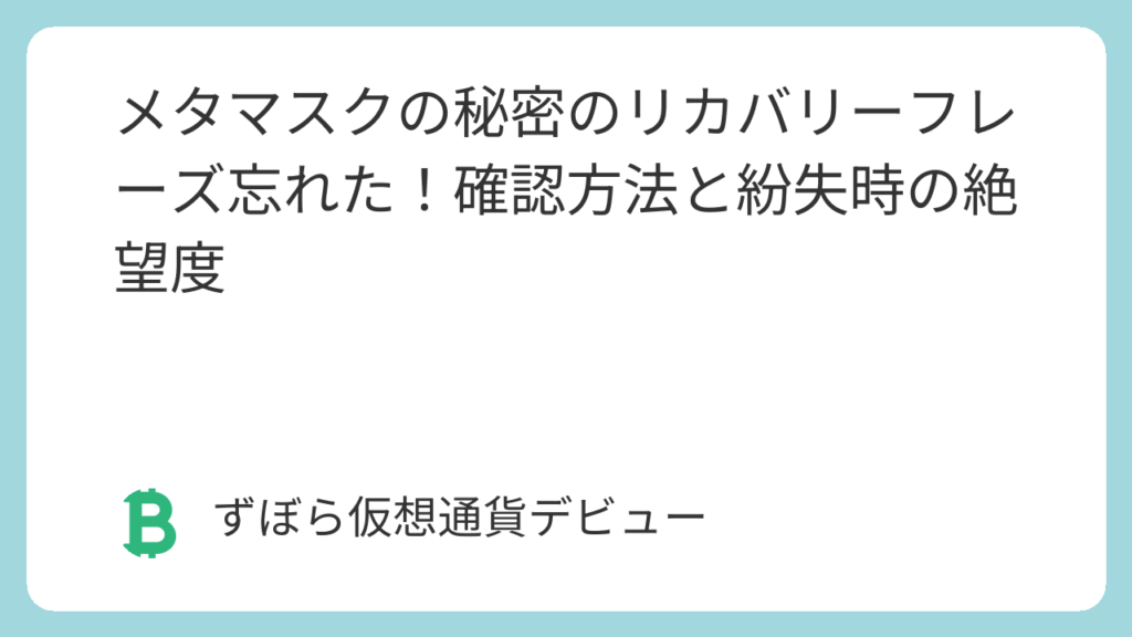 「メタマスクの『秘密のリカバリーフレーズ』、どこかにメモしたはずなのに見つからない…」「スマホを買い替える予定なんだけど、リカバリーフレーズがないと引き継げないんだっけ?」「もし完全に忘れちゃったら、メタマスクの中の仮想通貨は全部なくなる... -
