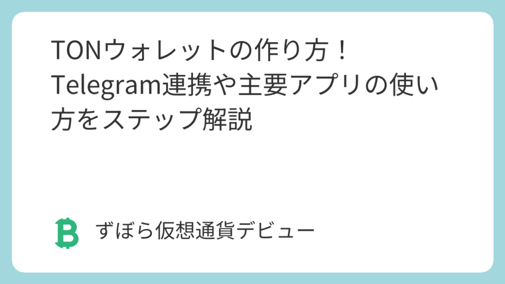 「最近、Telegram(テレグラム)で仮想通貨がやり取りできるって聞いたんだけど?」「TONっていう仮想通貨のウォレットを作りたいんだけど、どうやればいいの?」「なんか色々なウォレットがあるみたいで迷うな…簡単に作れる方法を知りたい!」 メッセージ... -