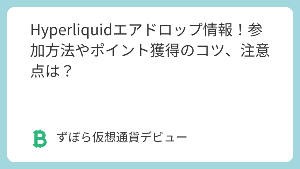 「Hyperliquid(ハイパーリキッド)って、エアドロップが期待できるってホント?」 「なんか取引すればポイントが貯まるらしいけど、具体的にどうやればいいの?」 「難しそうだけど、無料で仮想通貨がもらえるなら挑戦してみたい…どんなことに注意すれば... -