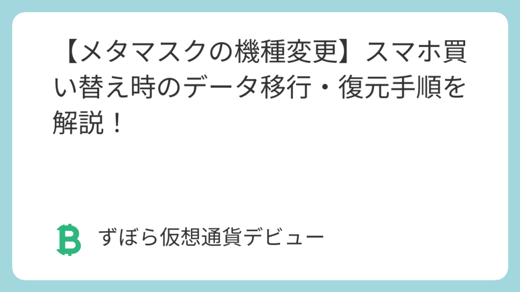 「新しいスマホに機種変更したんだけど、メタマスクってどうなるの?」「中に仮想通貨やNFTが入ってるから心配…ちゃんと引き継げるのかな?」「なんか難しそうだけど、簡単に安全に移行する方法はないの?」 スマートフォンを買い替える時、普段使っている... -