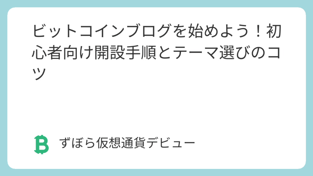 「ビットコインに興味が出てきたし、せっかくだからブログでも書いてみようかな?」「でも、どうやって始めるの? 難しいんじゃないの?」「ブログでビットコインのことを書いて、もし稼げたら嬉しいな!」 そうなんです!ビットコインに関する知識や体験... -