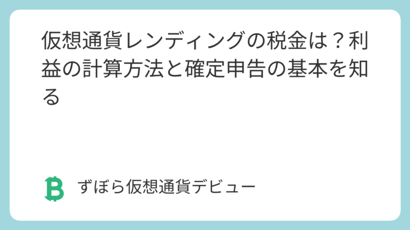 - 「持ってる仮想通貨を貸すだけで報酬がもらえる『レンディング』って、税金はどうなるの?」