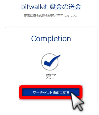 bitwallet資金の送金画面が表示されるので、送金金額など間違いなければ「決済する」をクリックします。